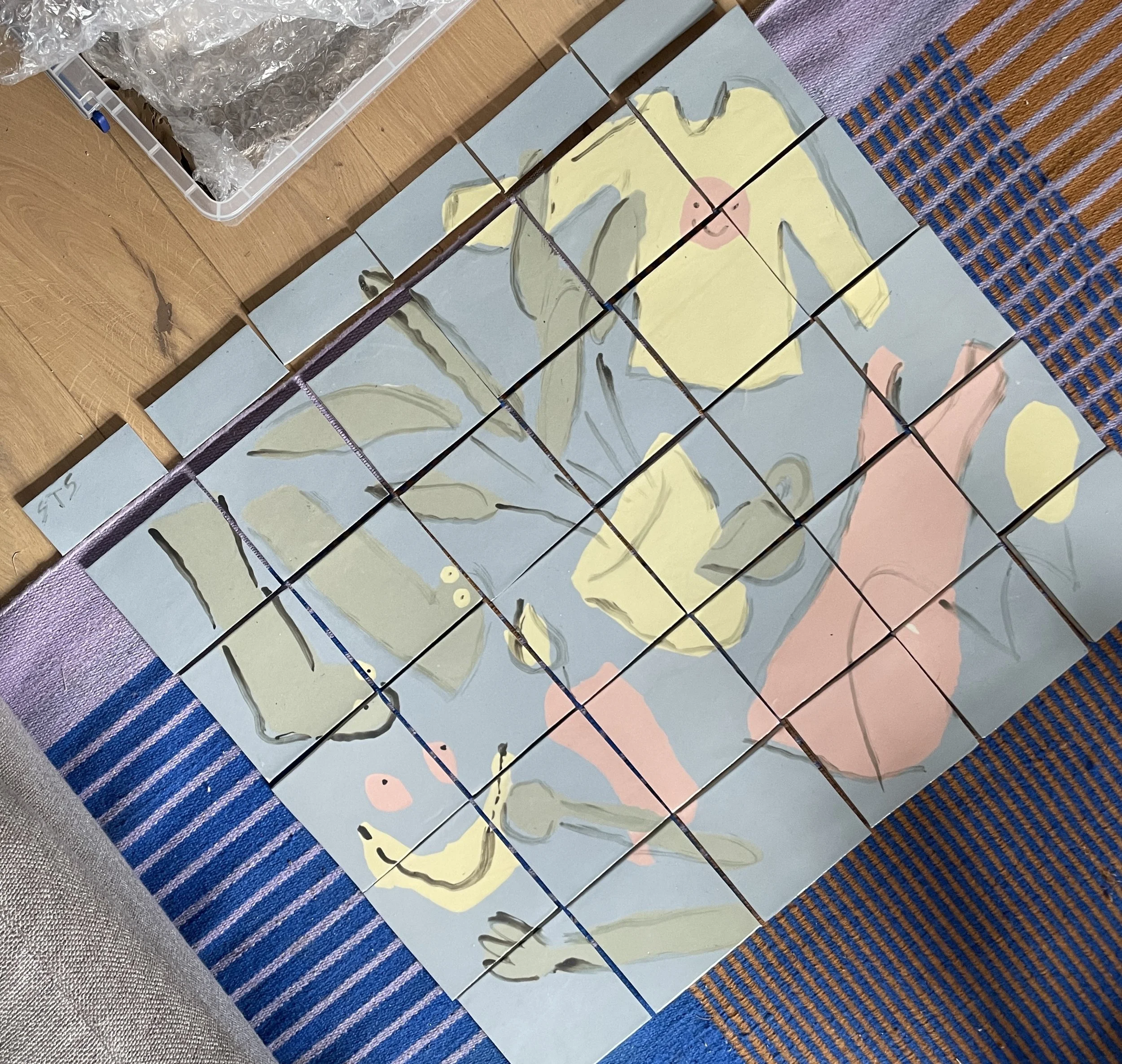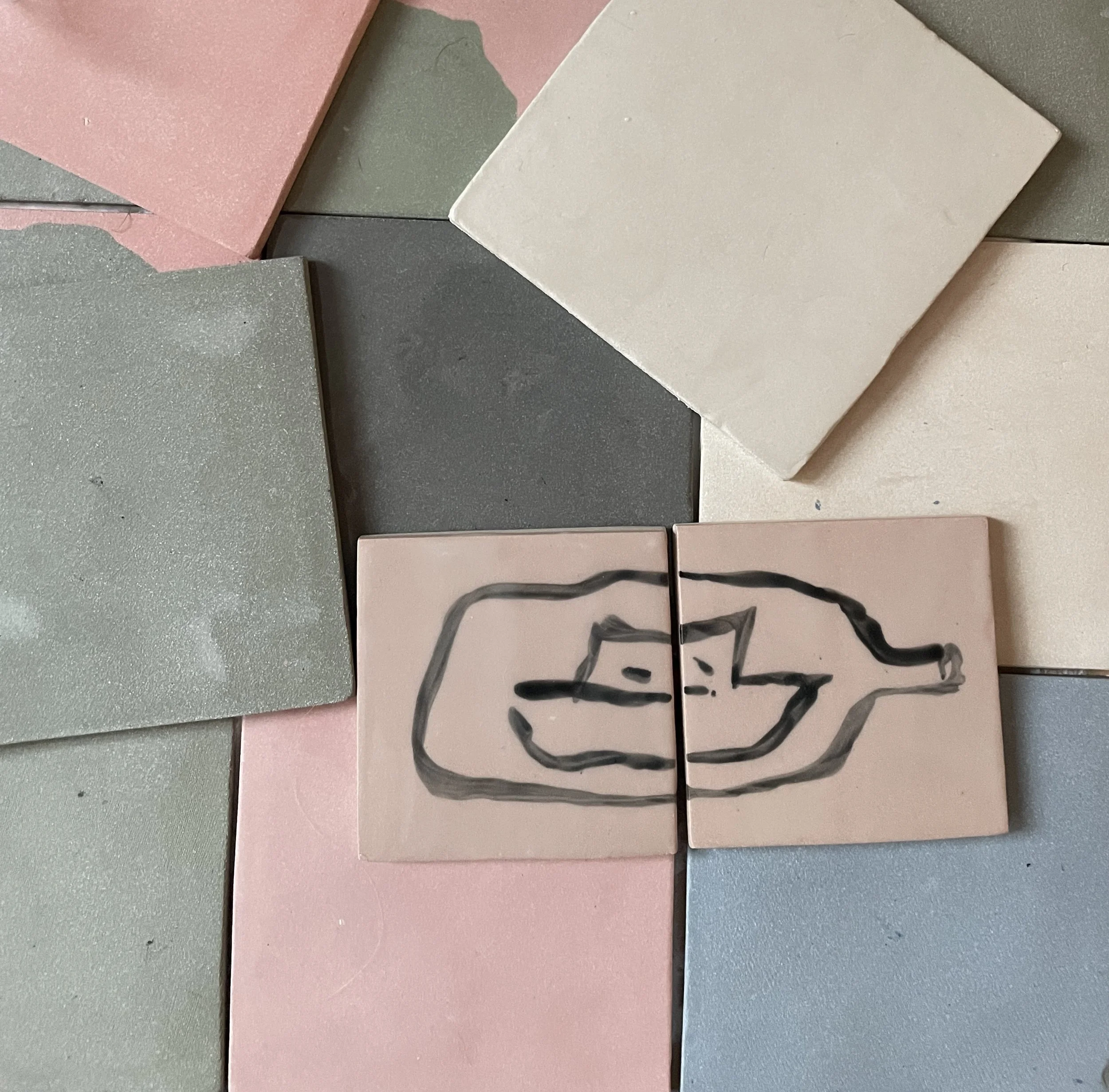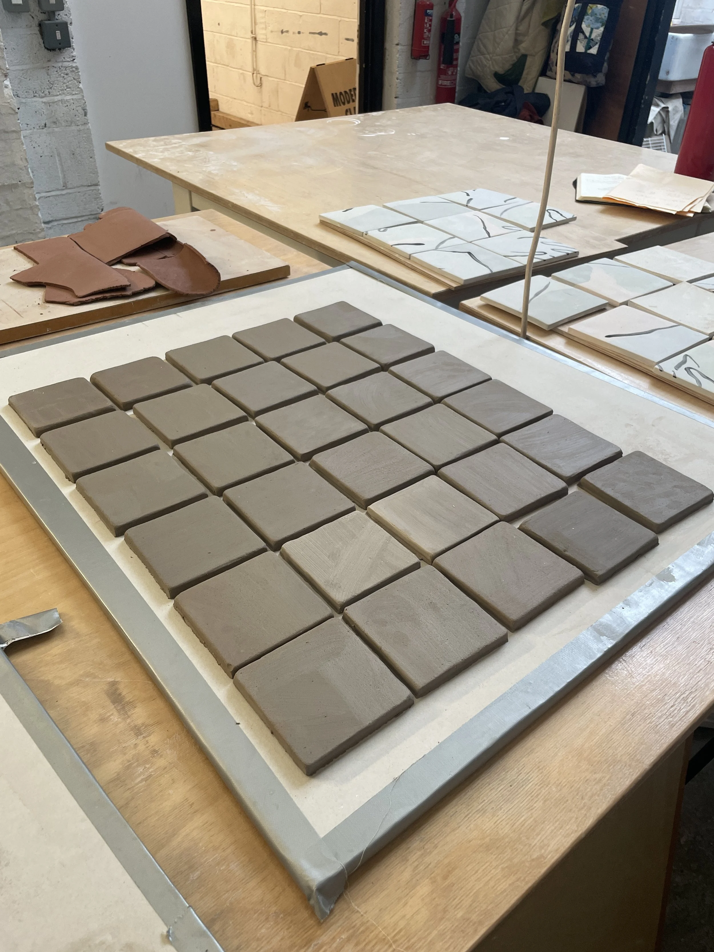 I am making bespoke tile murals for various clients, both for galleries like Warwick Arts Centre and private commissions for domestic spaces. I’m exploring colour and drawing through clay, often working collaboratively.