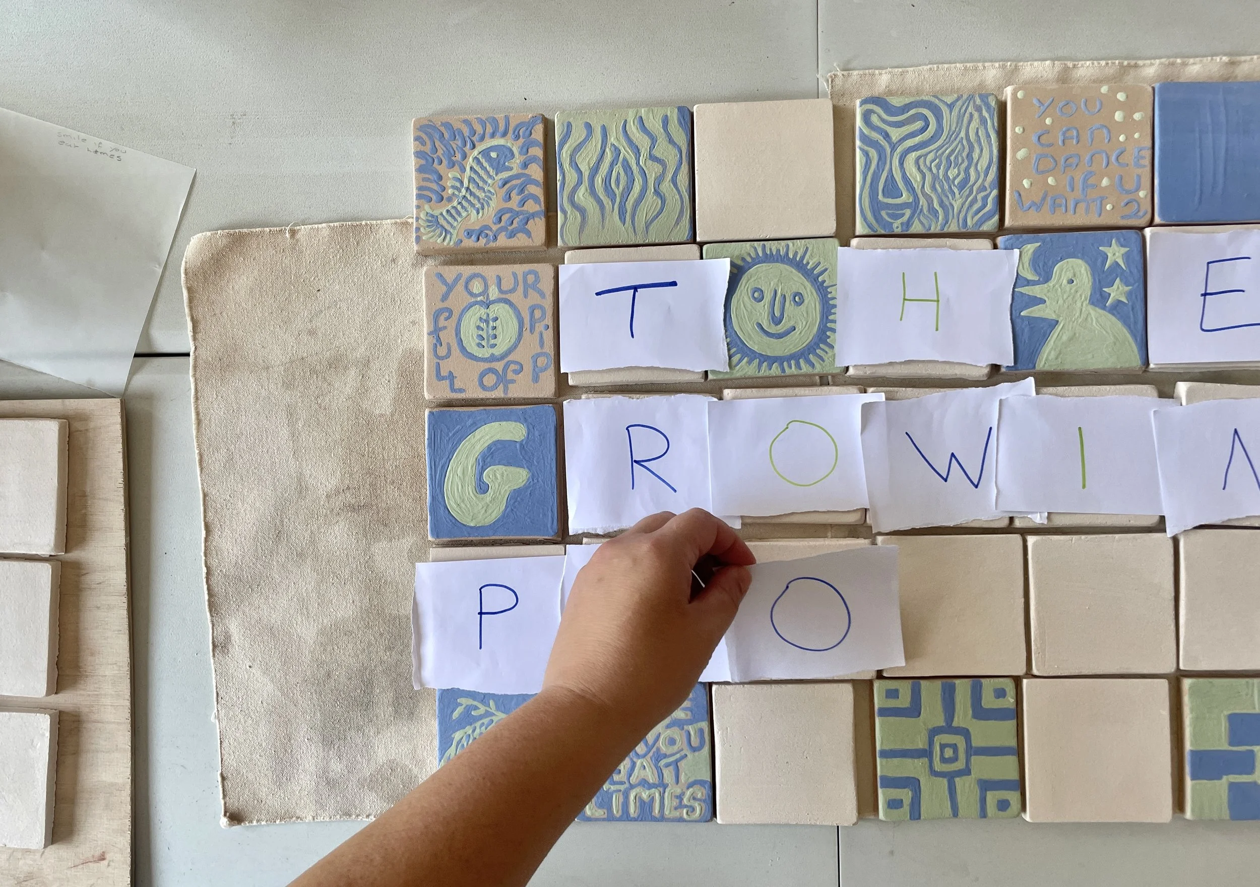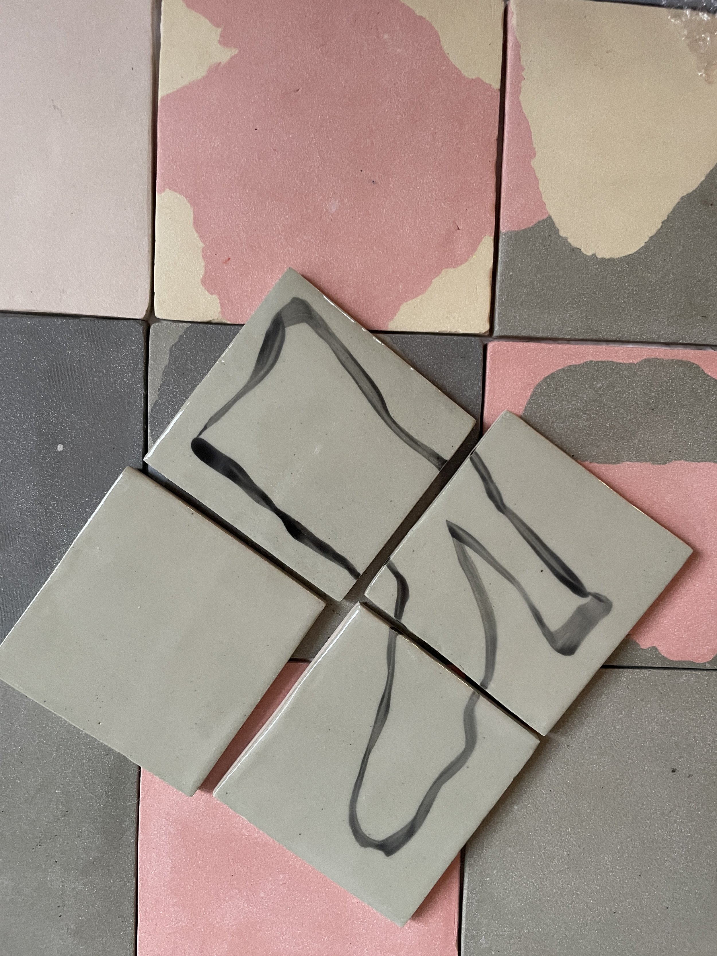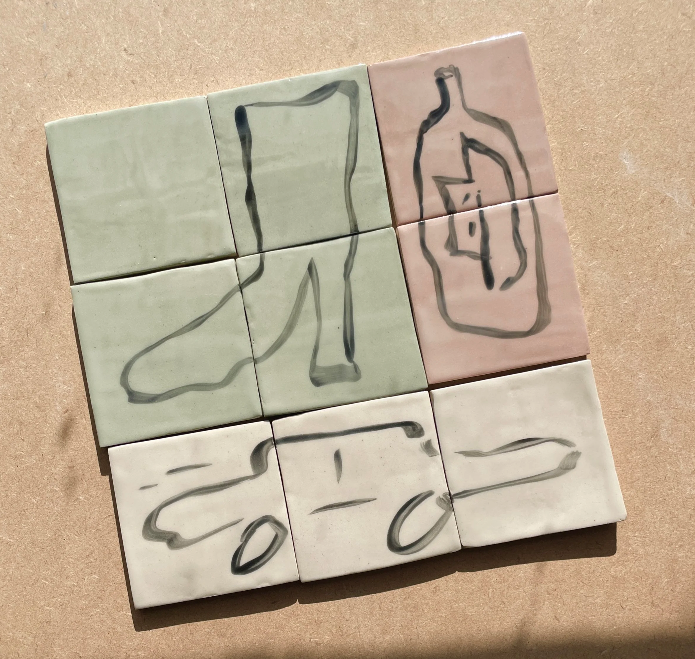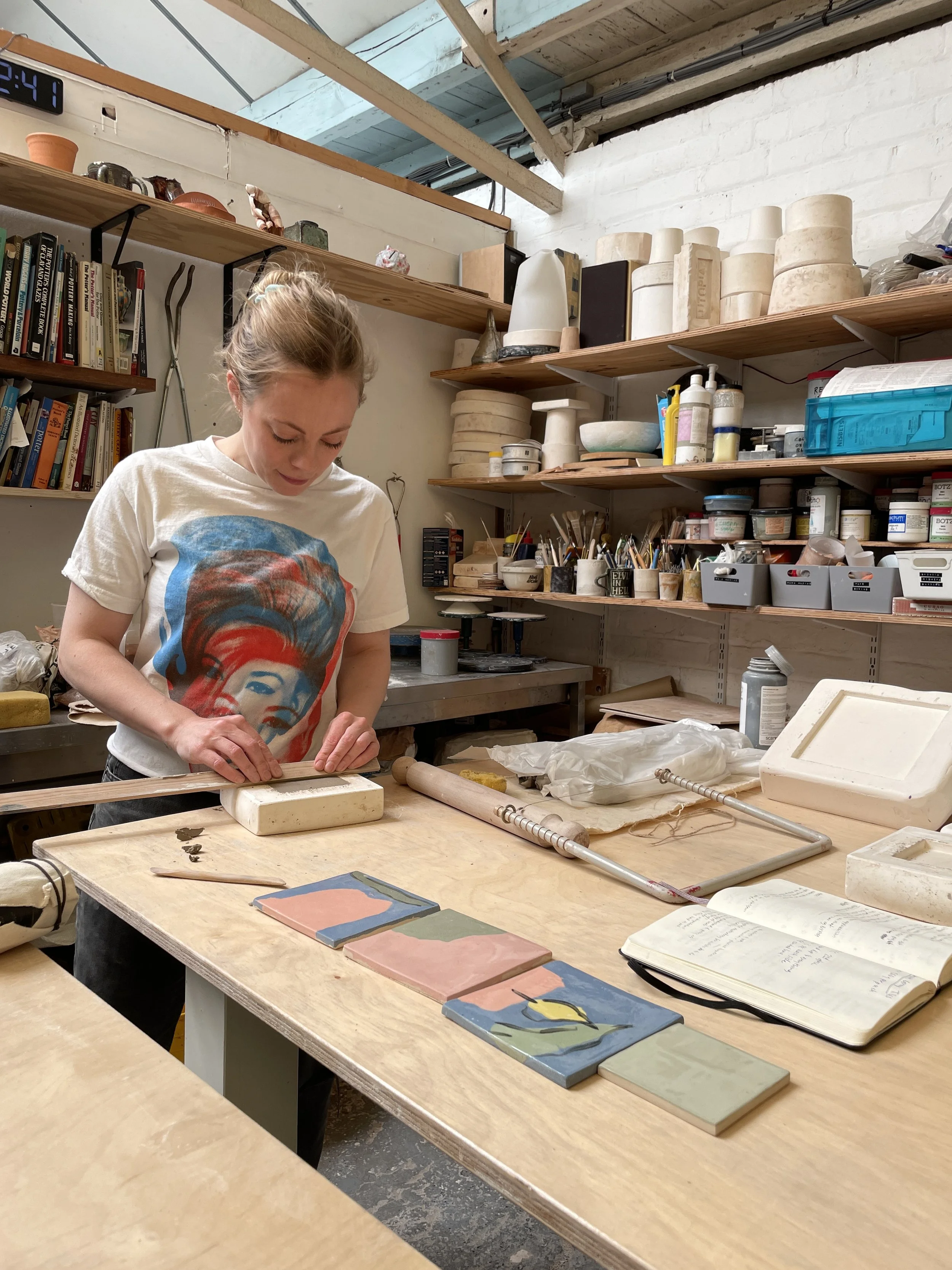 I am making bespoke tile murals for various clients, both for galleries like Warwick Arts Centre and private commissions for domestic spaces. I’m exploring colour and drawing through clay, often working collaboratively.