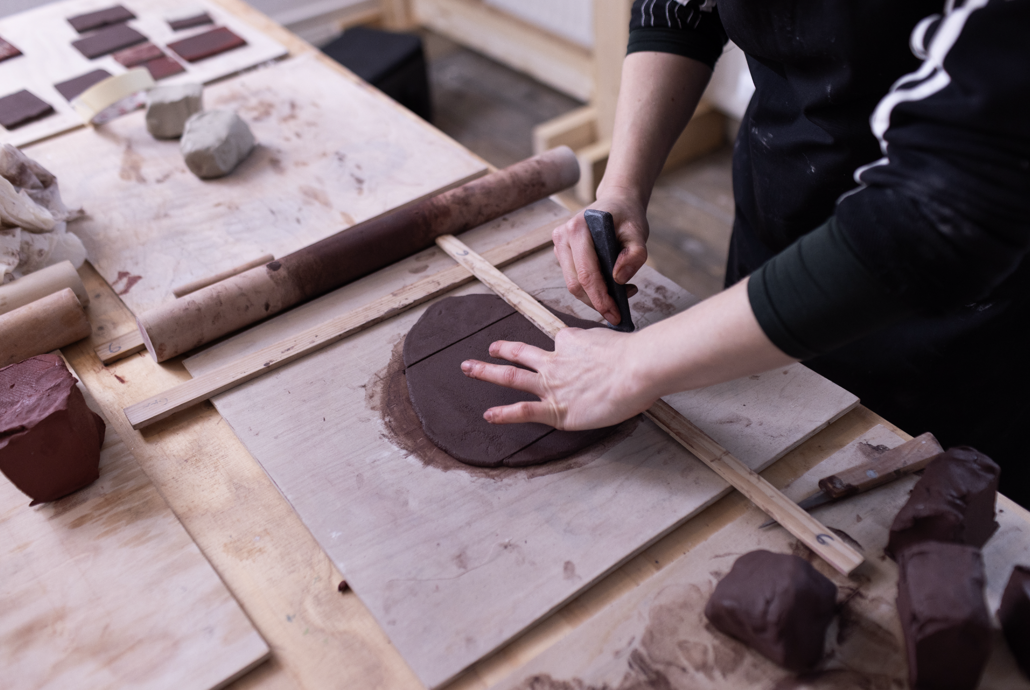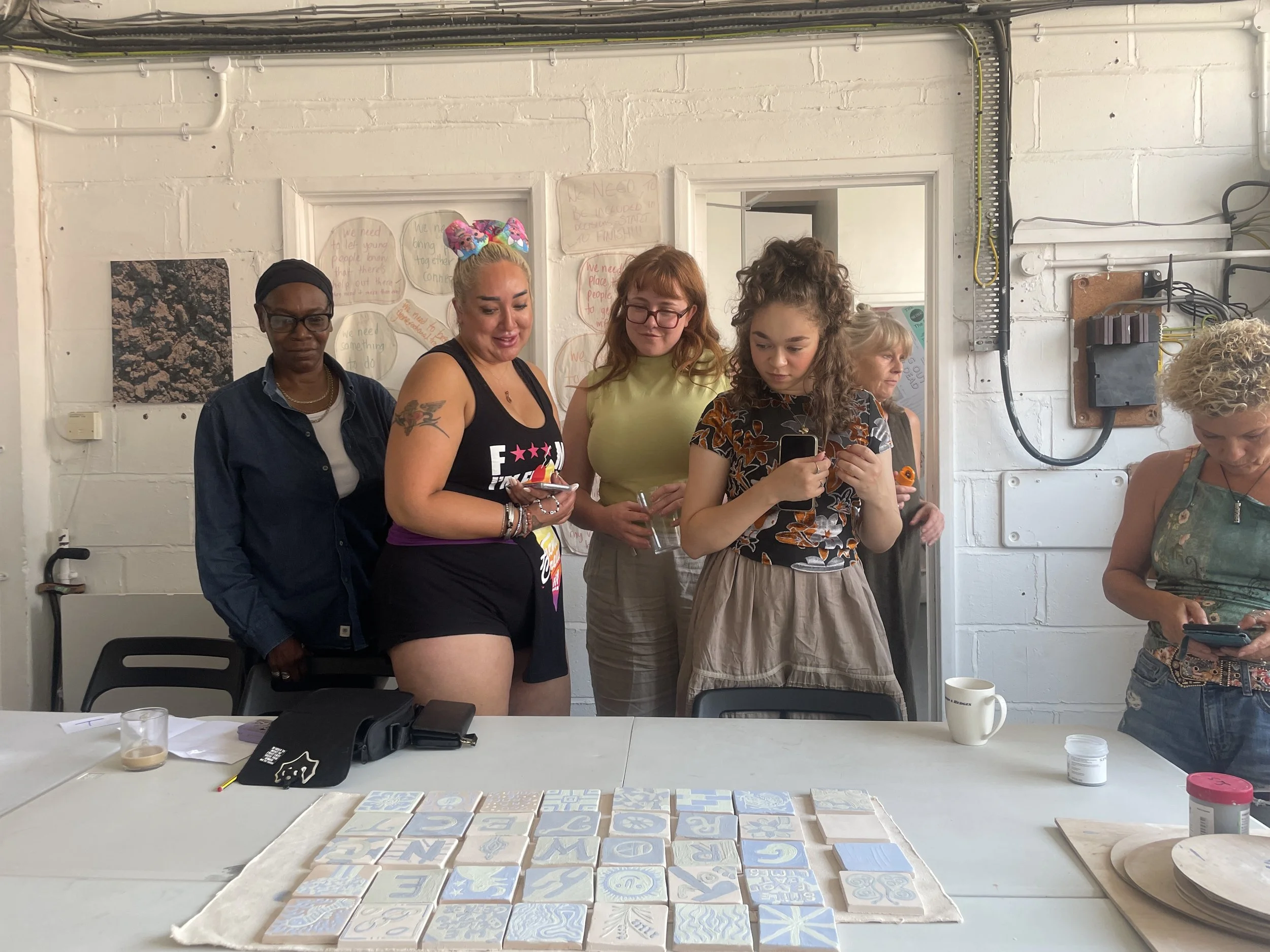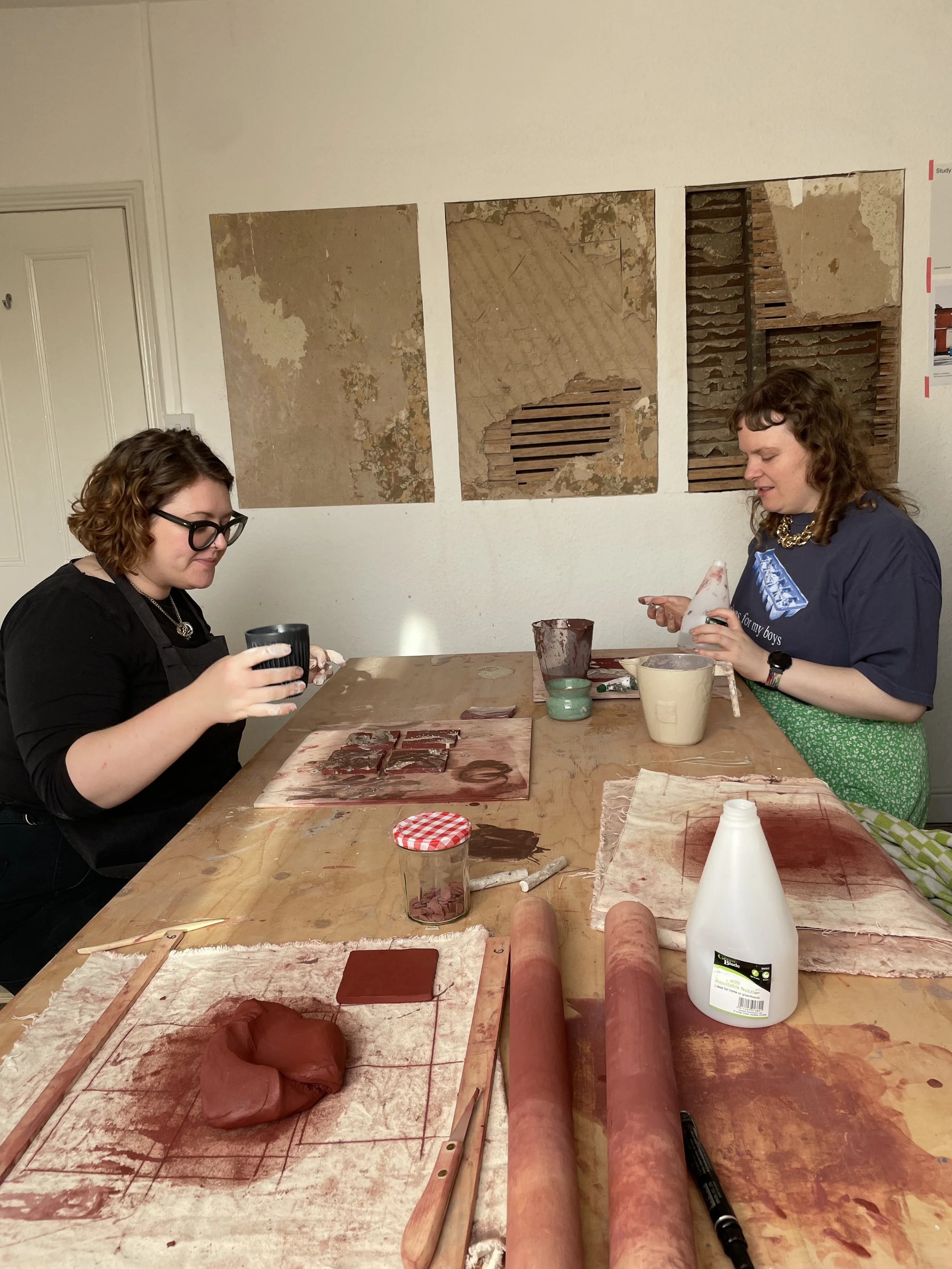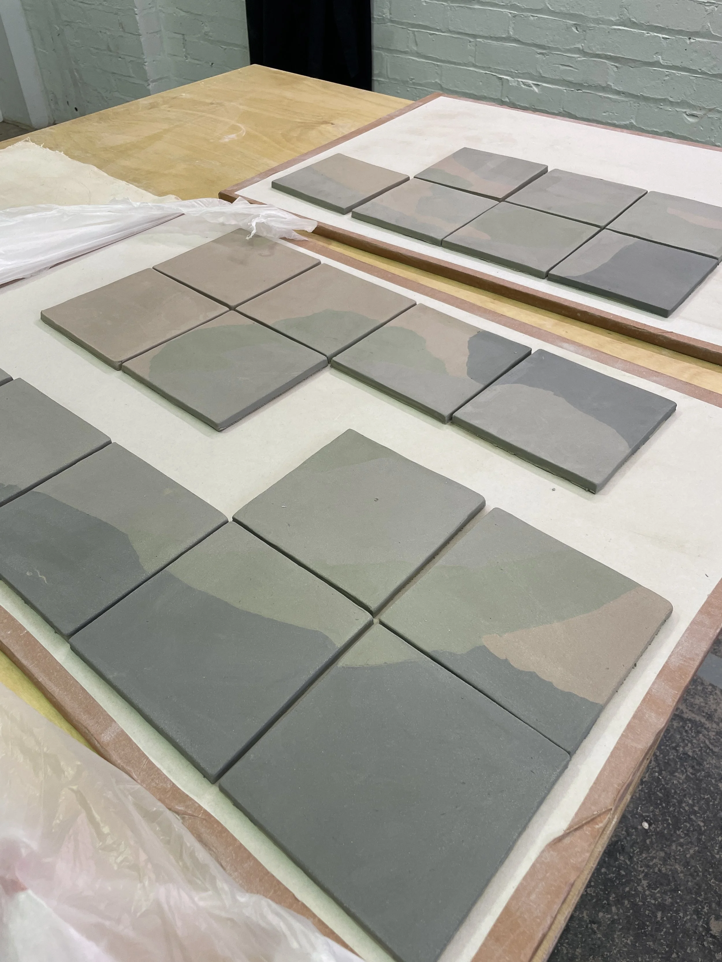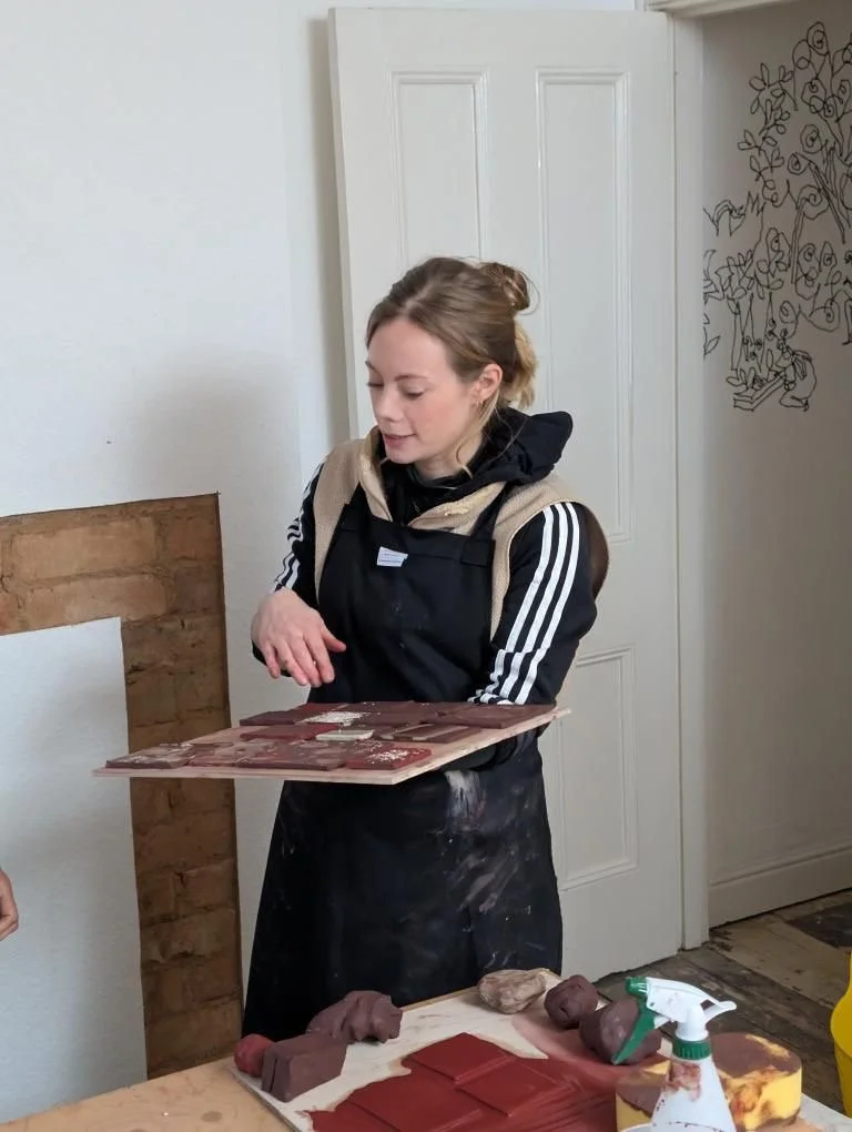 In 2025 I worked with Civic Square to demo tile making and explore surface possibilities. We explored local clays and sampled brick clay from Ketley Brick quarry. I worked with local people to explore different stages of the process. The project was featured in The Guardian.